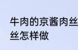 1、材料:牛里脊肉半斤调料:生抽两汤勺、料酒一汤勺、甜面酱两汤勺、王致和干黄酱一汤勺、白糖20克、葱白适量、淀粉适量。 2、将牛里脊 ....
